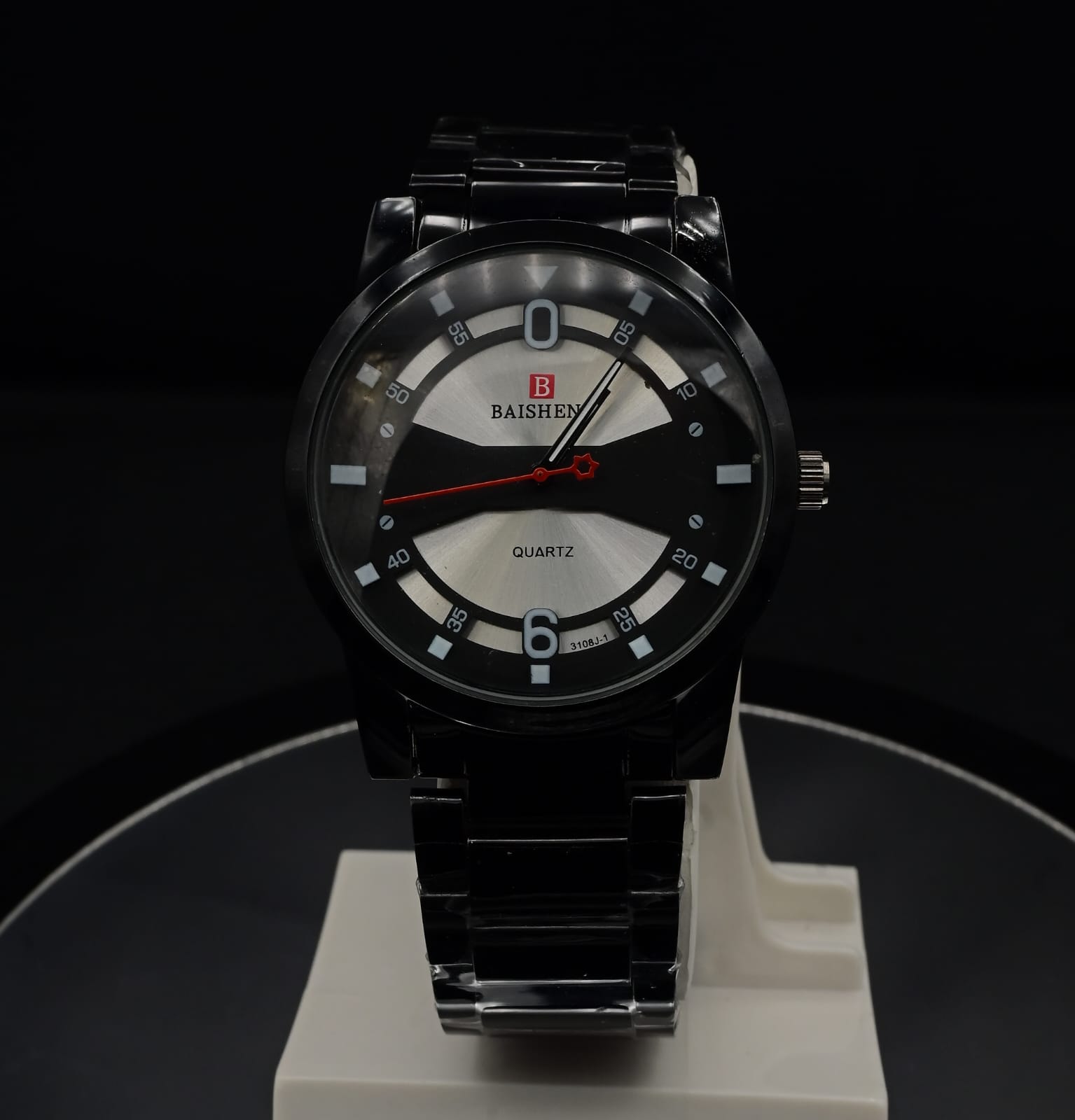 Baisheng Men’s Two-Tone Luxury Watch – Black & Silver Dial with Date Display